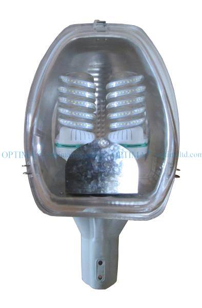 Уличный светильник НКУ-18У используется с двумя компактными люминесцентными либо светодиодными лампами с цоколем Е27, что уменьшает проблемы с тепловыделением по сравнению с одной лампой суммарной мощности.